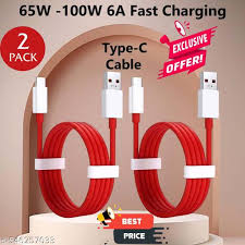 5A fast Charging Type-C Fast Charging & Data Transfer Cable, Compatible with all Smartphones & Tablet – 1 meter length - Red - Pack of 2